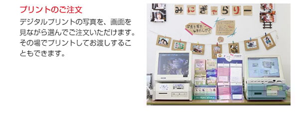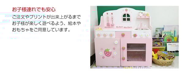 コバヤシカメラは、証明写真のスタジオや、ゆったりと写真の注文ができるコーナー、
